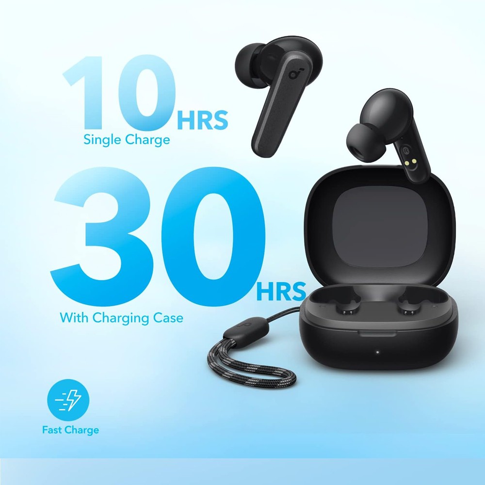 Single Earbud Mode: Want more awareness of your surroundings or to extend playtime even further? Simply remove one of the earbuds from the charging case, and the earbud will enter Single Earbud mode. Anker wireless earbuds.