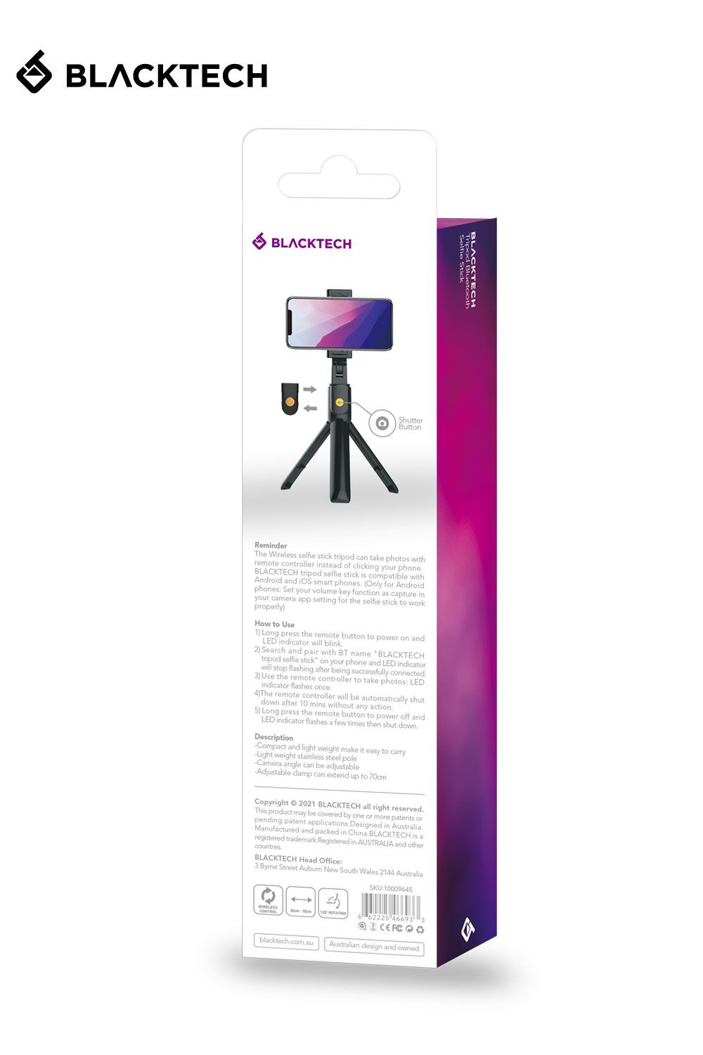 Shop - BLACKTECH Tripod Bluetooth Selfie Stick – Black