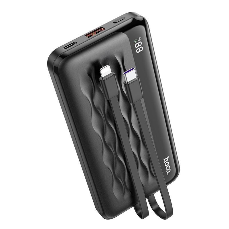 Hoco J113-L 5000mAh Energy Bar Power Bank With Build in Lightning Cable – Black
