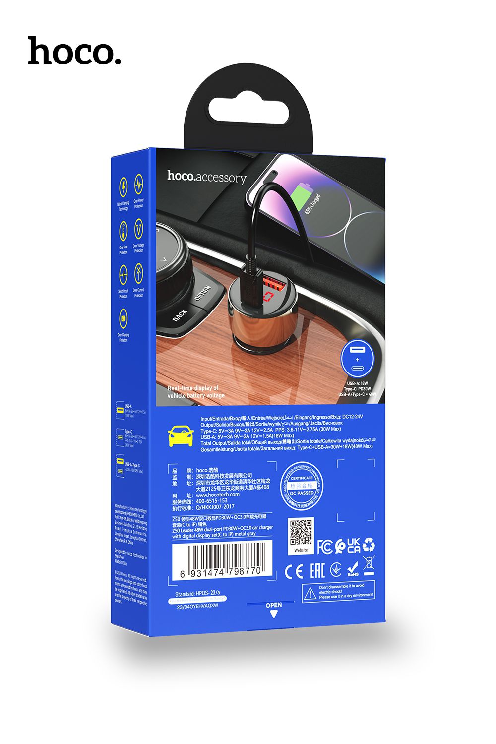 Hoco Z50 48W PD QC Car Charger With PD USB-C Cable – Gray