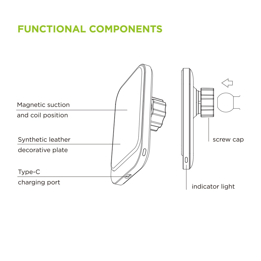 1 x iMG1 Car Mount, 1 x Air-vent Hook, 1 x Type-C Cable, 1 x MRing 1 Magnetic Ring, 1 x Installation Guide
