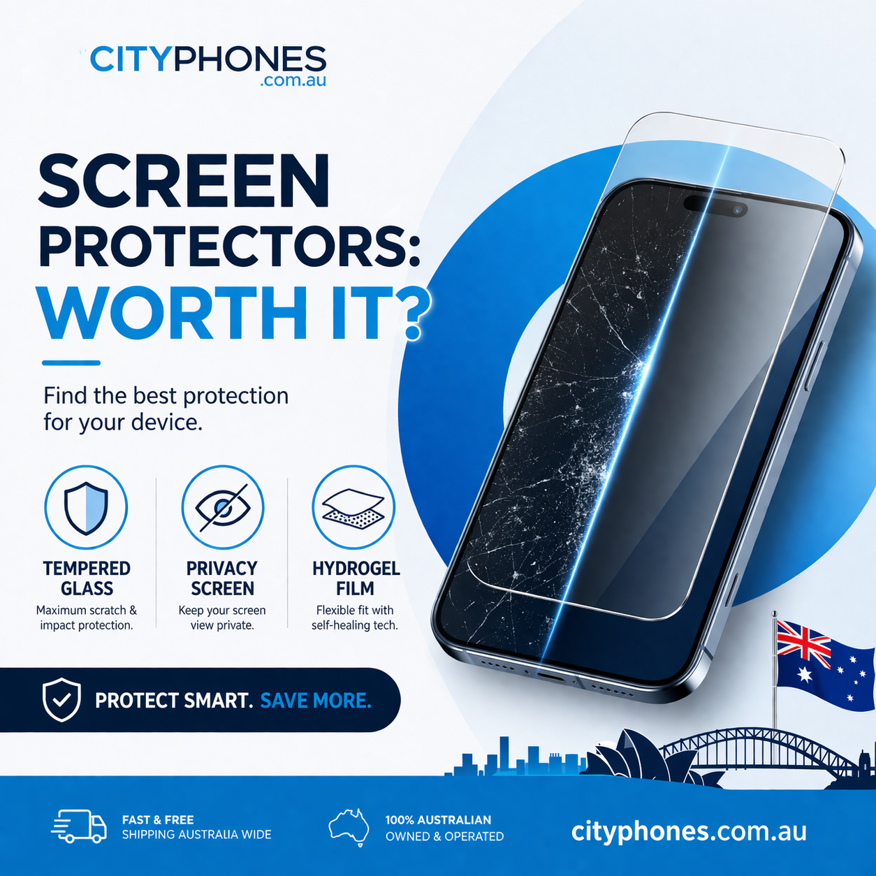 City Phones in Melbourne repairs iPhone, Samsung, Google Pixel and more, and also sells cases and screen protectors online and in‑store. The team sees broken screens every day, so they know which protectors actually hold up in real life.